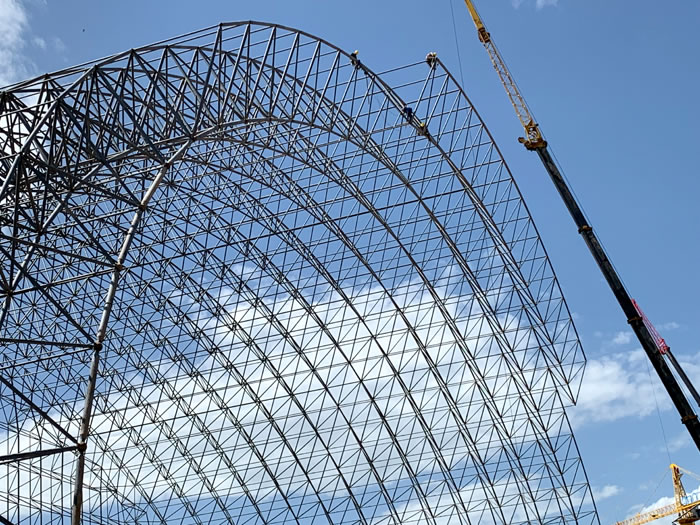 (2)网架加工前应对现场尺寸进行复测,确认无误后方可进行加工、安装;网架制作、运输、安装应遵守《空间网格结构技术规程》JGJ7-2010、《钢网架睢宁螺栓球节点》JG/T 10-2009、《钢网架睢宁螺栓球节点用高强度螺栓》 GB/T 16939-2016、《睢宁钢结构睢宁工程睢宁施工规范》 GB50755-2012、《睢宁钢结构睢宁工程施工质量验收标准》 GB50205-2020。
